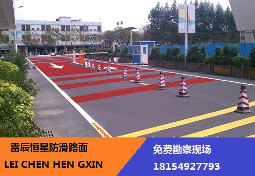 雷辰恒星施工彩色防滑地面具有色彩的多樣性、穩定的物理性能、極高的耐磨性:硬度可達邵氏A85以上。優良的防滑性、附著力強:耐久性好;耐候性好:長期日曬不變形,經久耐用,戶外有機地坪的*佳選擇。而且環保等特點,紅色還起到警示作用!